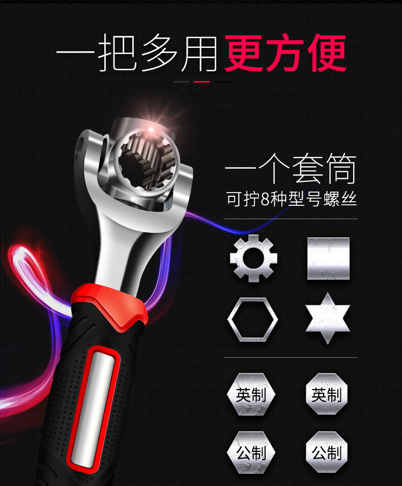 商品名称:韩曼柯 多功能扳手多功能套筒扳手套装8八合一万向旋转多头扳手 套柄八合一扳手8-21【不带磁】