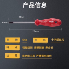 FELO 德国原装进口螺丝刀PP减震手柄 十字螺丝起子铬钒钢起子螺丝批维修工具20210290(4.5*80mm)